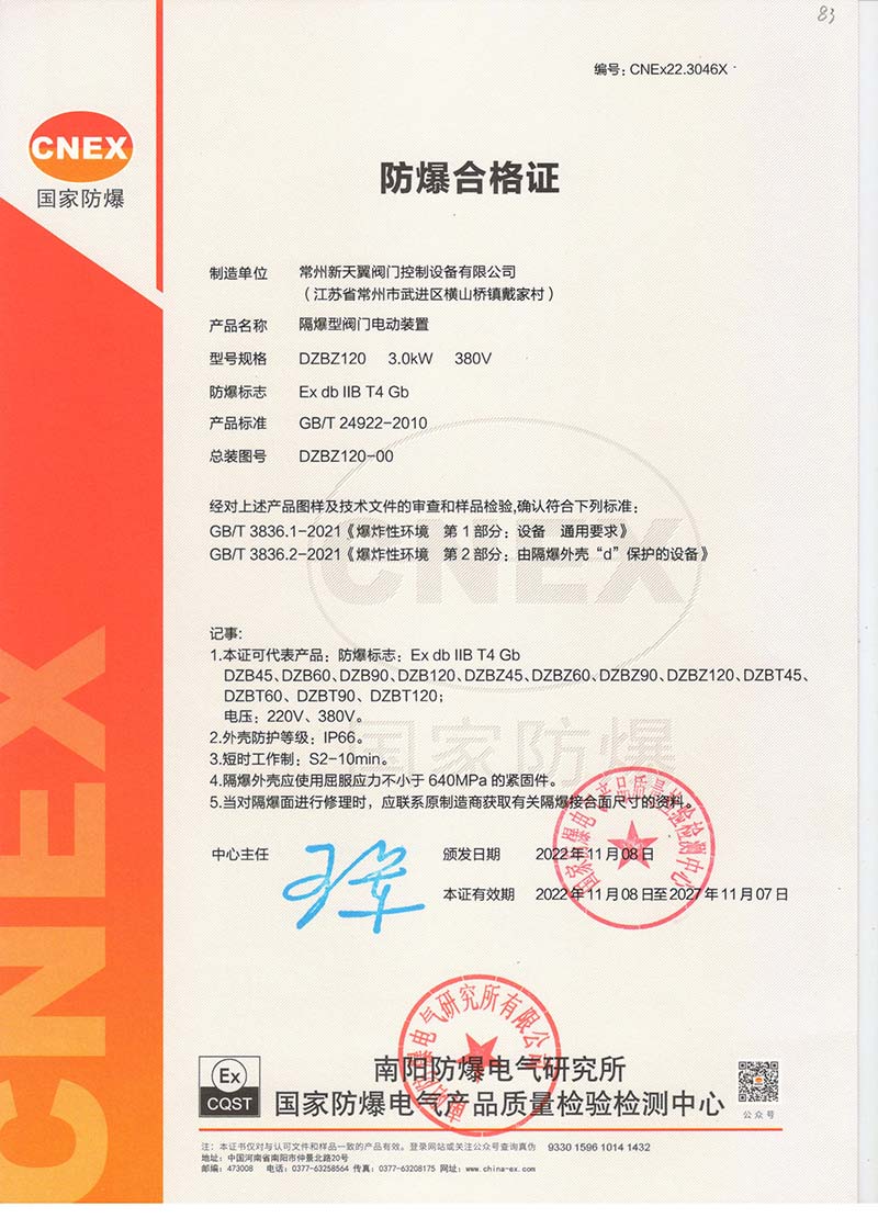 防爆Z10B Z10FB國家強(qiáng)制性產(chǎn)品認(rèn)證CT4證書109.1