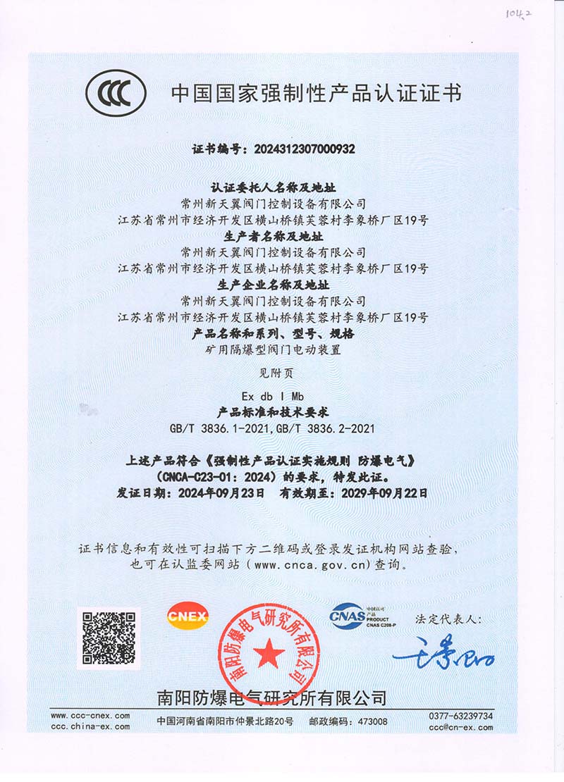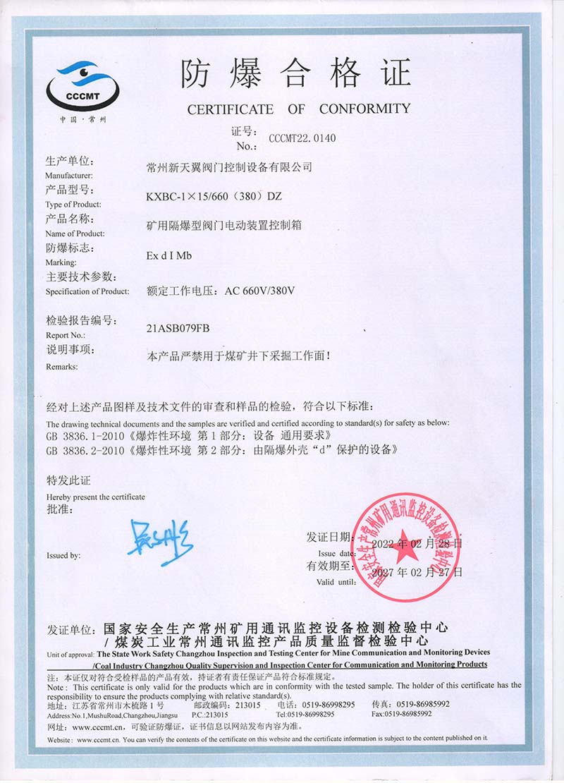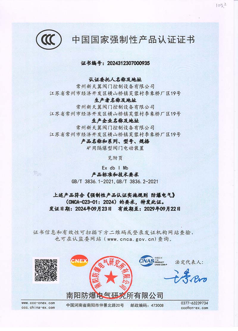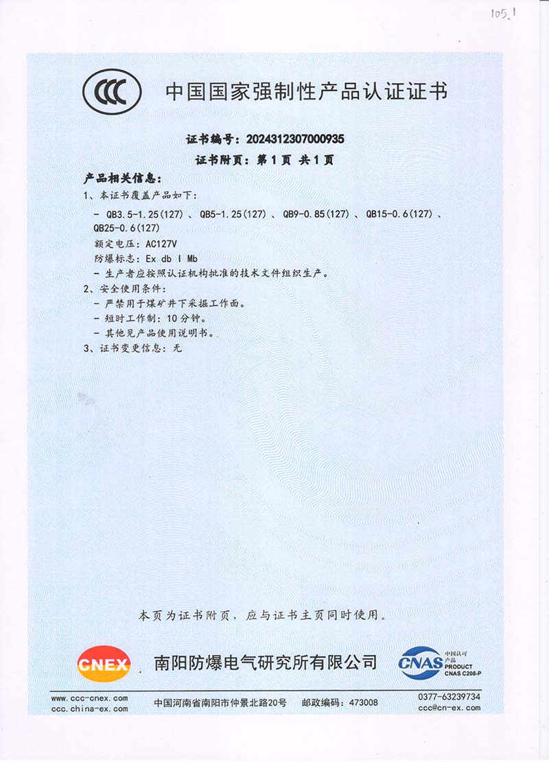 礦用隔爆QB127V中國國家強(qiáng)制性產(chǎn)品認(rèn)證證書105.2